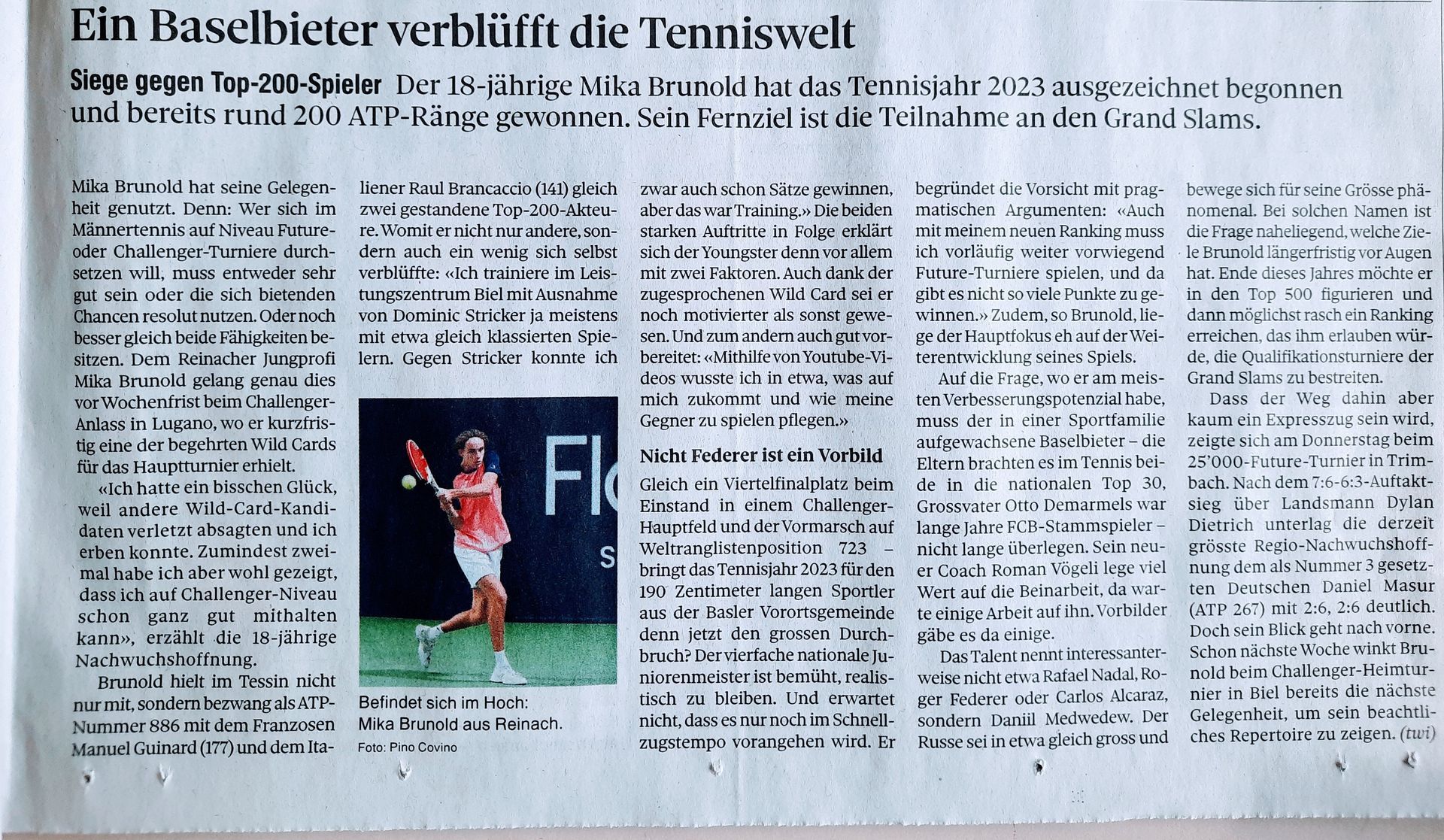 Ich bin Mika Brunold, Tennisspieler, und möchte euch einen kleinen Einblick in mein Tennisleben geben.
